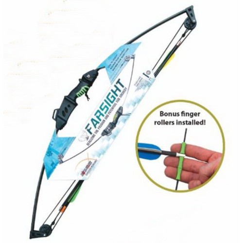 The Farsight youth compound set is very popular for kids who love the appeal of a wheel bow. Easy to draw with a let-off when the string comes back to full draw. New design moulded polymer riser with built in sight frame. Lightweight easy to hold and aim bow with a boost to arrow velocity